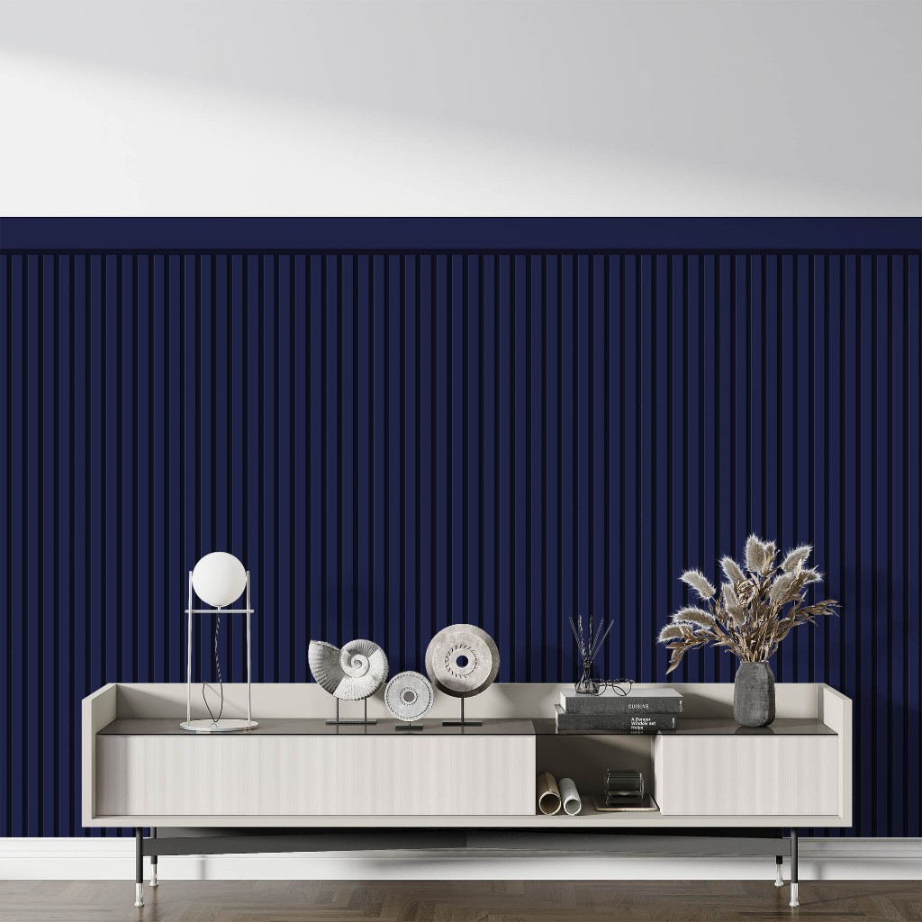 Papel De Parede Adesivo Ripado Azul Marinho Com Faixa Para Meia Parede