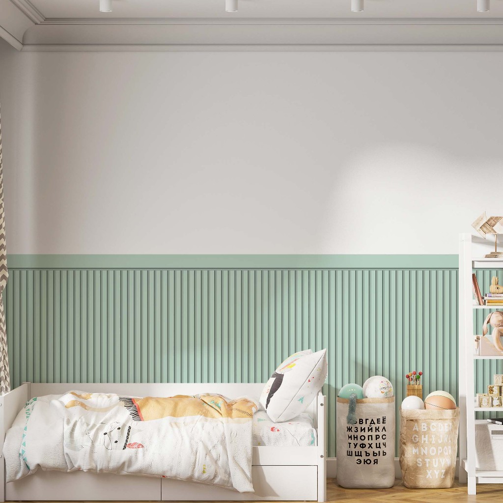 Papel De Parede Adesivo Ripado Verde Menta Com Faixa Para Meia Parede