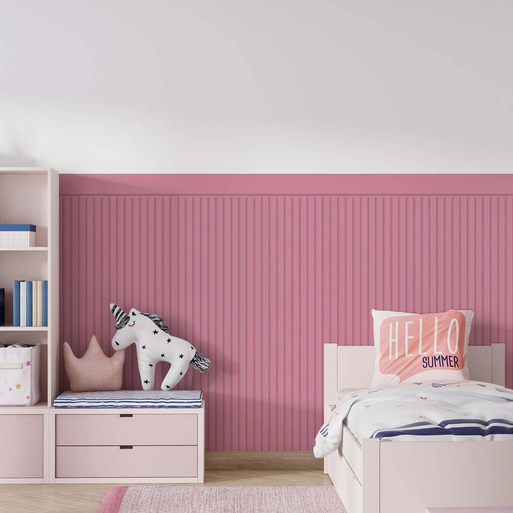 Papel De Parede Adesivo Ripado Rosa Com Faixa Para Meia Parede - Vinil Autocolante