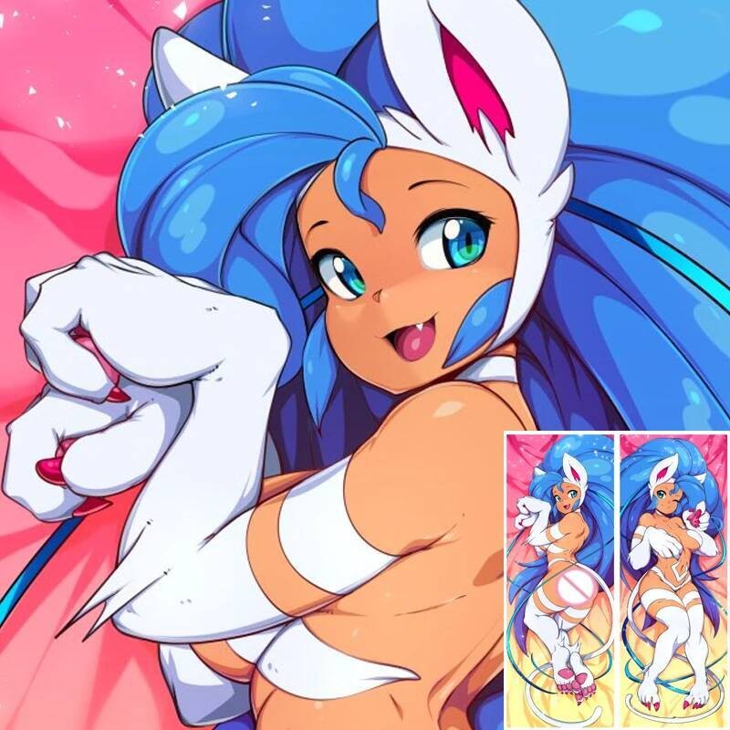 Dakimakura Waifu Peludo Azul Cabelo Fronha 2 Lados Impressão Anime Decoração Capa De Almofada