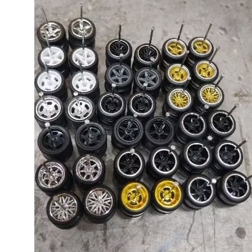 Rodas com pneus de borracha para miniaturas hotwhells maisto 1/64.