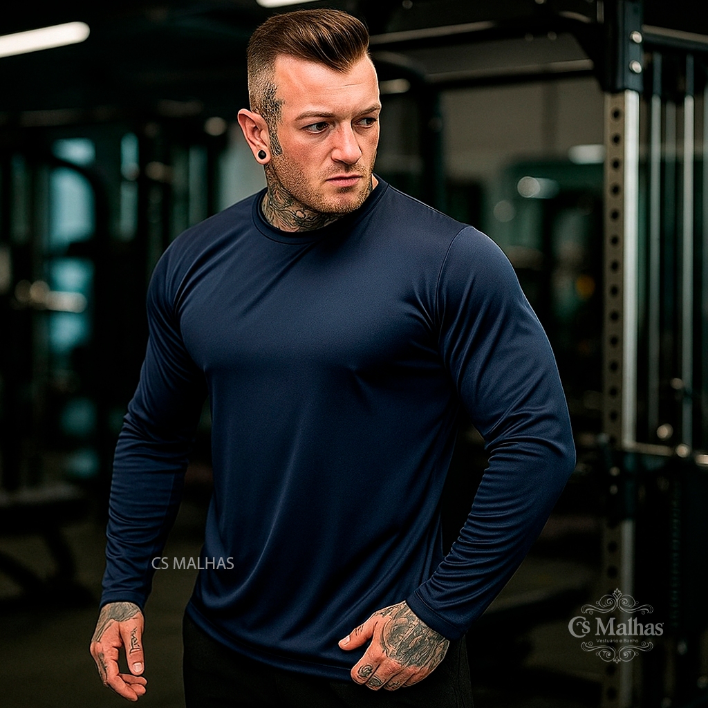 Camisa Térmica Proteção UV 50 Plus Size Manga Longa Gola Baixa Segunda Pele Sol Praia Piscina