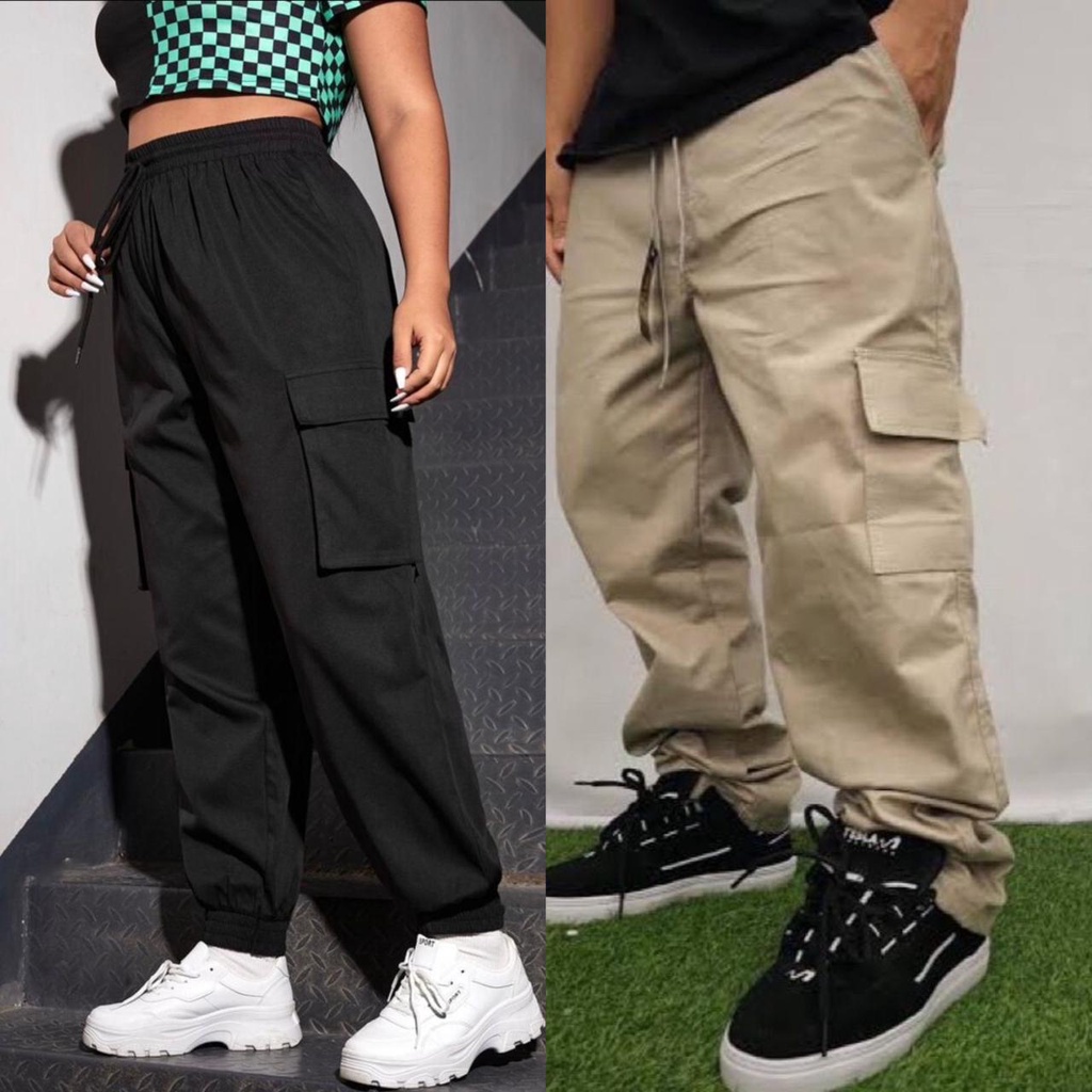 KIT 2 Calça Cargo Unissex Masculina Feminina Promoção Larga Preta Bege Cáqui Sarja Moda Skate