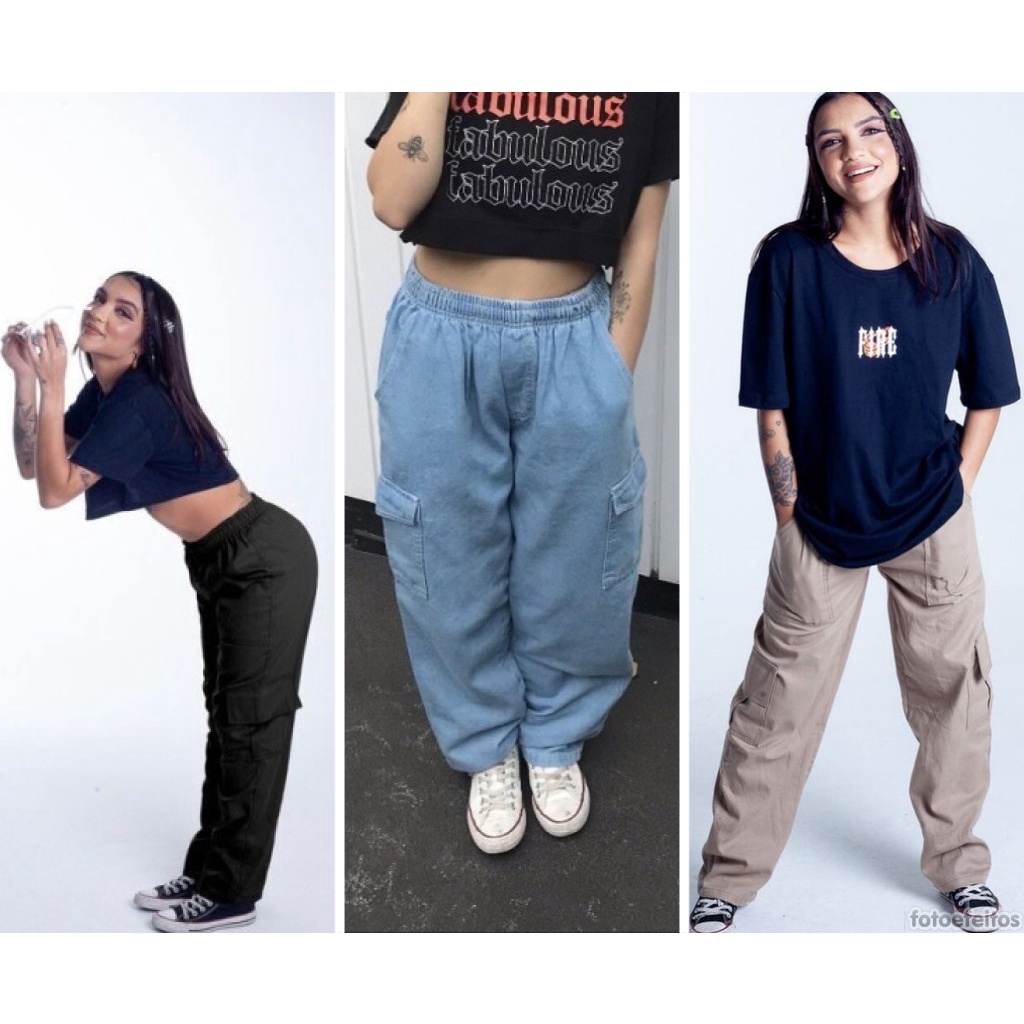 Calça Cargo Sarja Caqui Preta Branca Azul Jeans Skate Unissex Streetwear Blogueira Dazzling