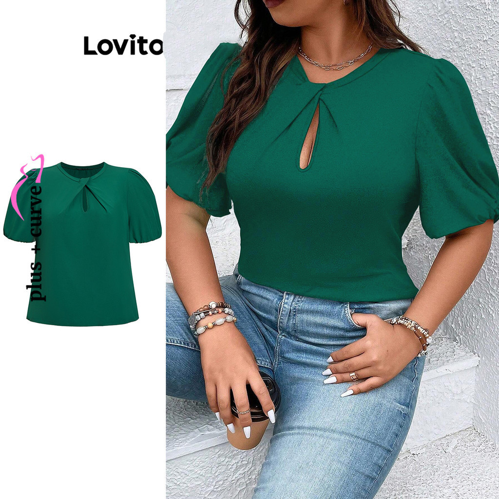 Lovito Blusa Plus Size Curva Elegante Com Recorte Liso Para Mulheres LBL08195