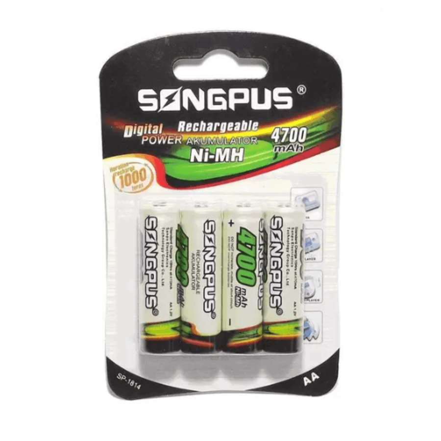 Pilhas Recarregáveis 4700 MAh Ni-MH AA Songpus Longa Duração Kit 4 Unidades