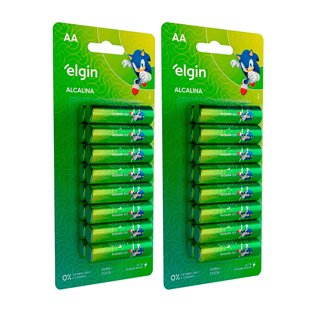 Kit 32 Pilhas Elgin Alcalina Longa Duração 16 Pilhas AA + 16 Pilhas AAA