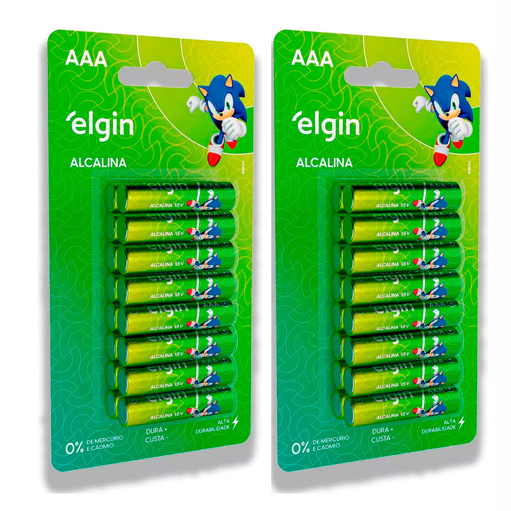 Kit 16 Pilhas Elgin Alcalina 8 Pilhas AA + 8 Pilhas AAA Cartelas com 16 ou 32 Unidades