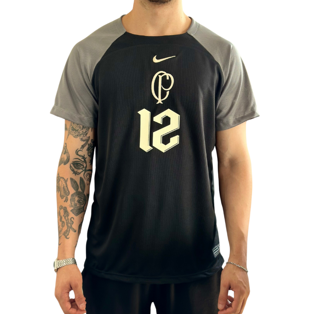 Camiseta Cassio 2024 nova goleiro CP Timao Preta 12 1ª linha Tecido proteção UV esporiva