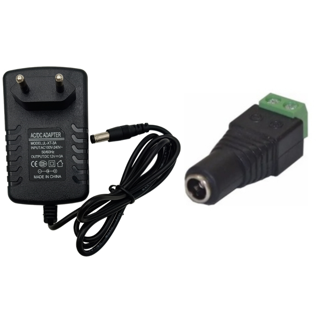1 Fonte De Alimentação 12v 3a + 1 Conector P4 Femea C/ Borne