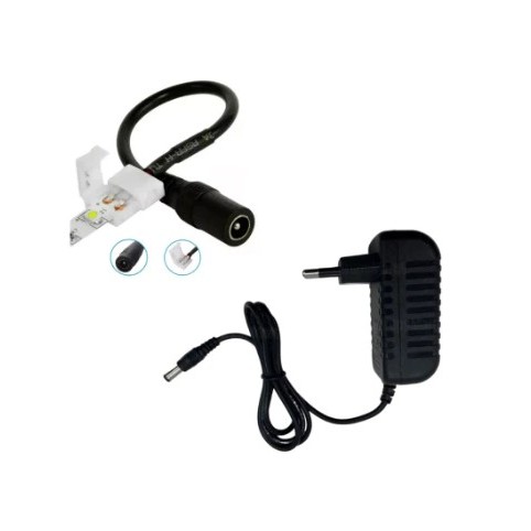 Cabo Conector Plug P4 com Emenda Fita LED 2 Vias 5050, 3528, 2835 + Fonte 12V 2A Bivolt