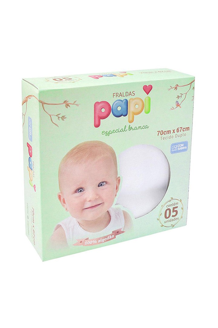 Kit Fralda Bebê Papi Lisa Branca com Bainha (5 unidades) - Papi