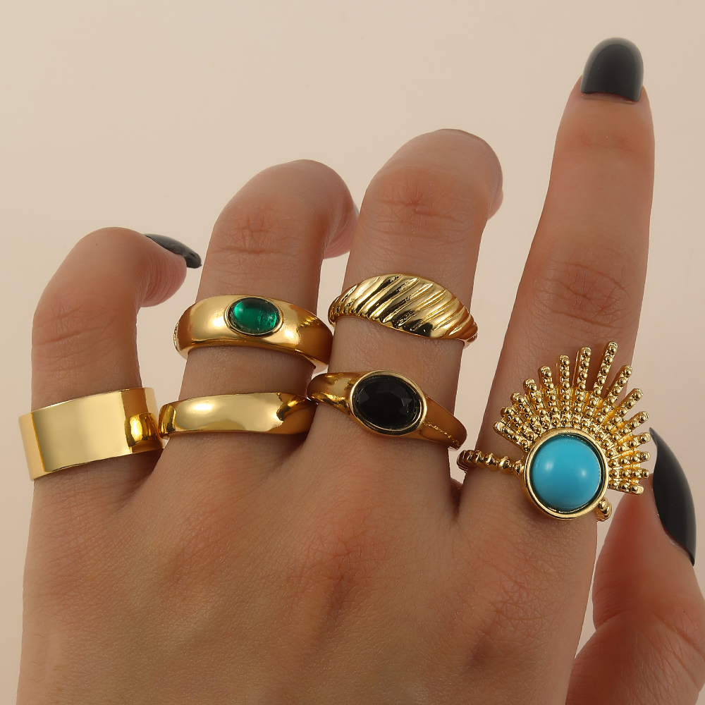 8 Peças / Conjunto Anel Turquesa Opala Conjunto Anel Natural Gemstone Anel Moda Jóias de Noivado