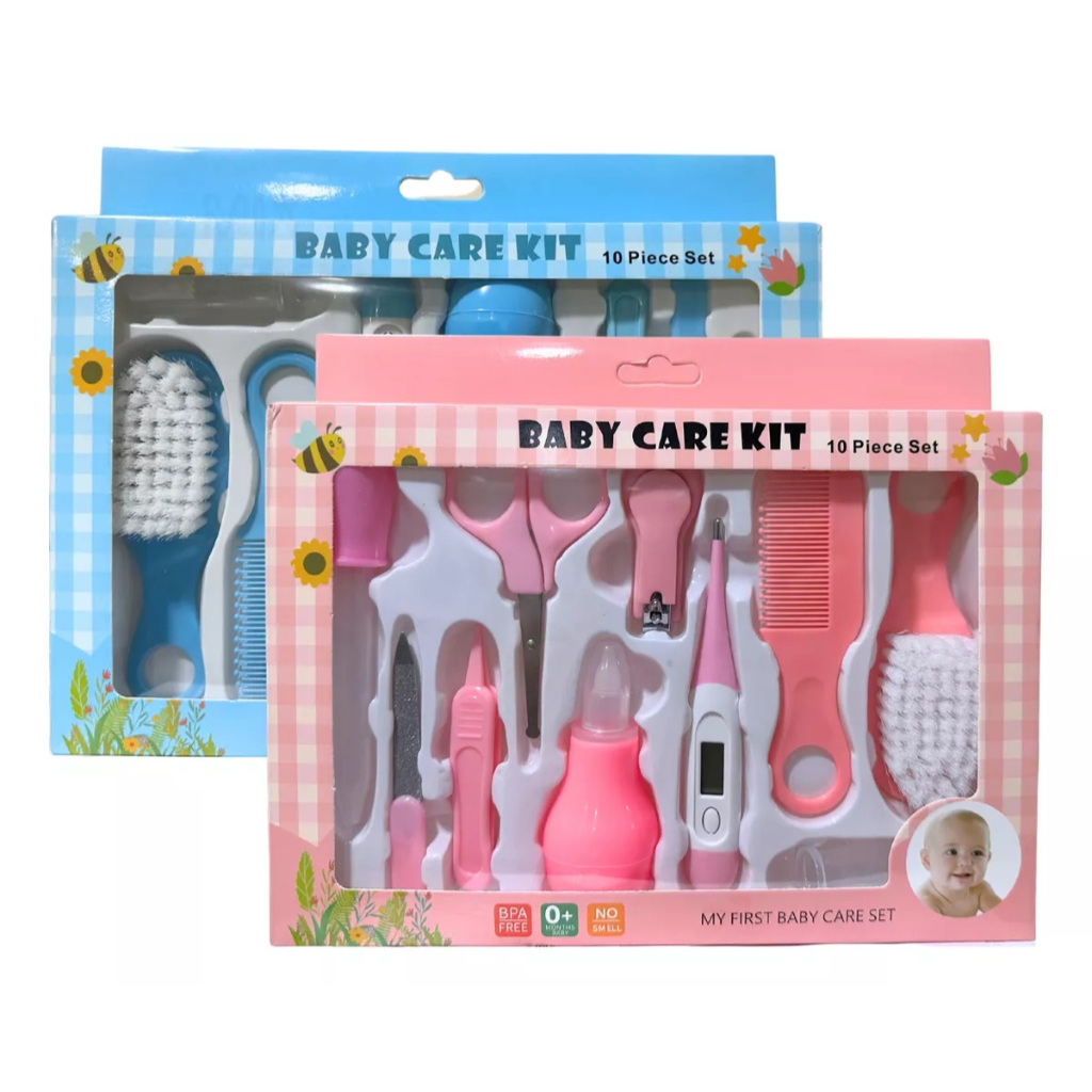 Kit Higiene 10 pçs Cuidado Bebê Recém Nascido Termômetro Digital Incluso