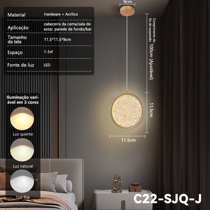 ILIFE Luminária Pendente Saturno Cristal Bolhas Redondo Gold Preto 5W Bivolt