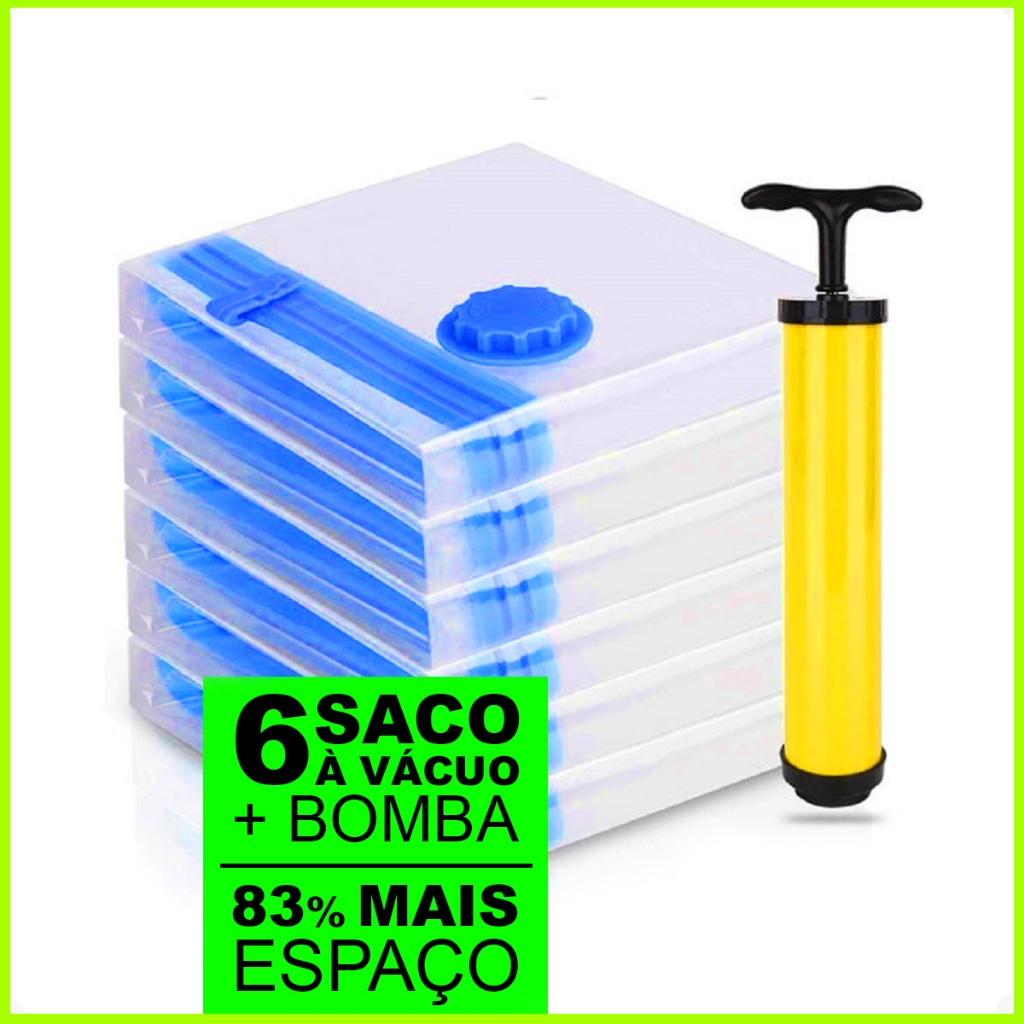 Kit 6 Saco a Vácuo Para Roupa Viagem Mala Edredon 50x60 Organizador de Guarda Roupa + Bomba
