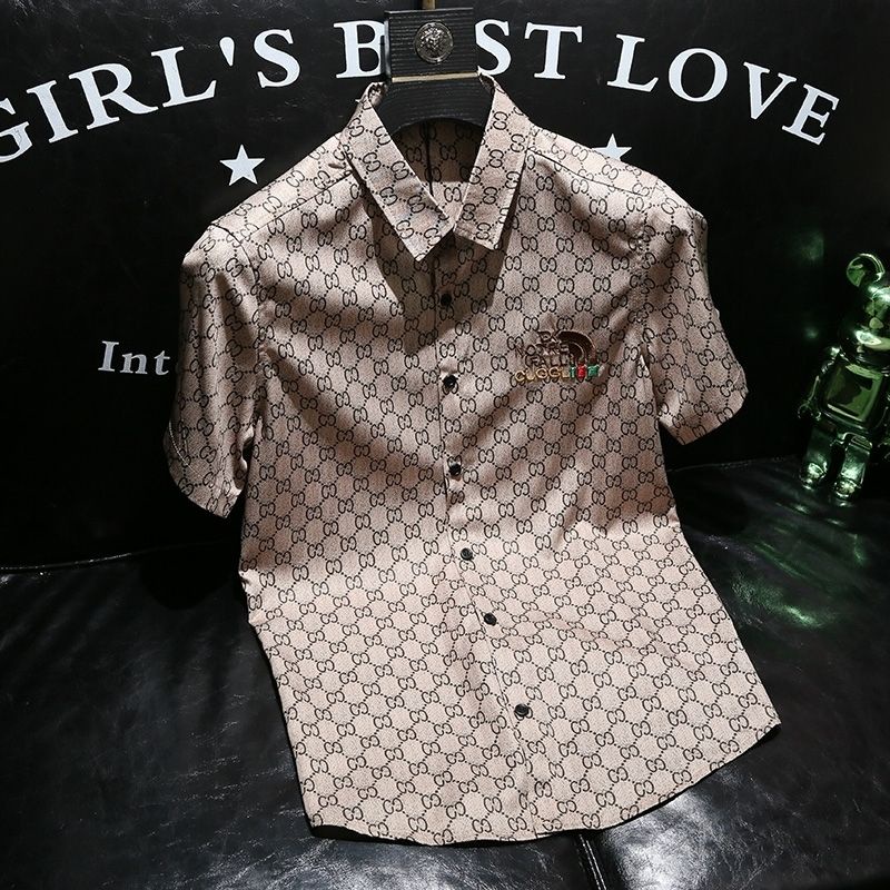 Camisa Masculina De Alta Qualidade Manga Curta Novo Estilo Moda Slim-Fit Estampada Meio @