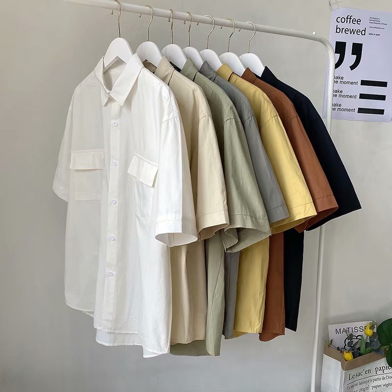 Camisa de Moda Retro Moda Homem Camisa 7 Cores Disponível Camisa de Verão Meia Manga Cor Sólida Camisa de Estilo Japonês Macacão Solto Manga Média