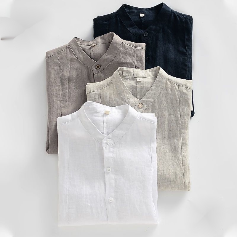 2023 nova Camisa de Linho Homem Camisa de Linho Meio Manga Verão Estilo Fino Colarinho Cardigan Tamanho Grande Camisa de Linho Casual de Algodão Solto Camisa de Linho Homem Topo de Linho
