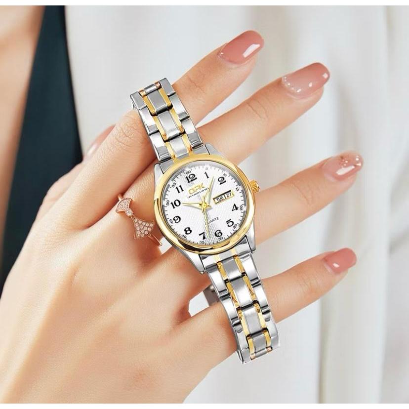 OPK 8110 Relógio feminino original de aço inoxidável luminoso à prova d'água