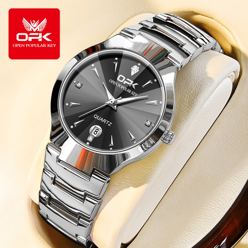 OPK Relógio Masculino Feminino A Prova D Água Original Luxo Prata Preto De Aço Quartzo 8105