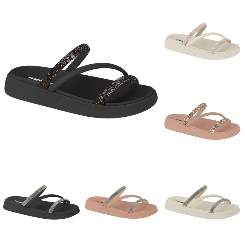 Tamanco Plataforma Moleca Tiras Strass Napa Slide Feminino