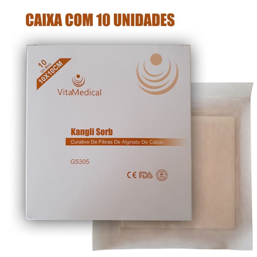 Curativos De Alginato De Cálcio Kangli Sorb 10x10cm Caixa C/10 unidades - VitaMedical
