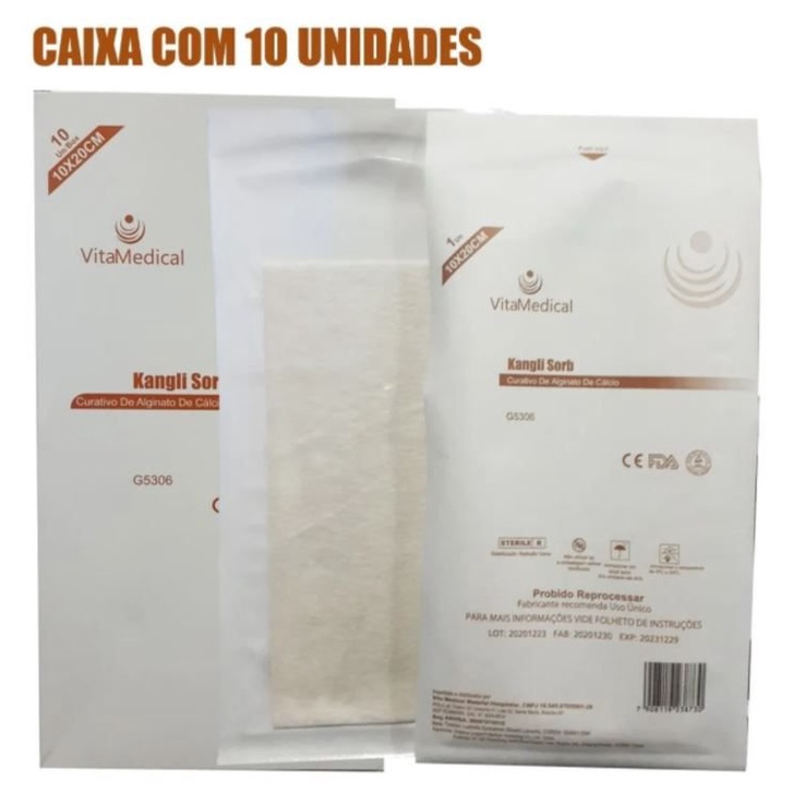 Curativo De Alginato De Cálcio Kangli Sorb 10x20cm Cx C/10 - VitaMedical