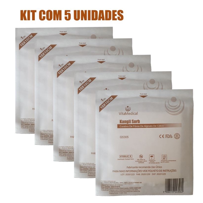 Kit 5 Curativos De Alginato De Cálcio Kangli Sorb 10x10cm - VitaMedical