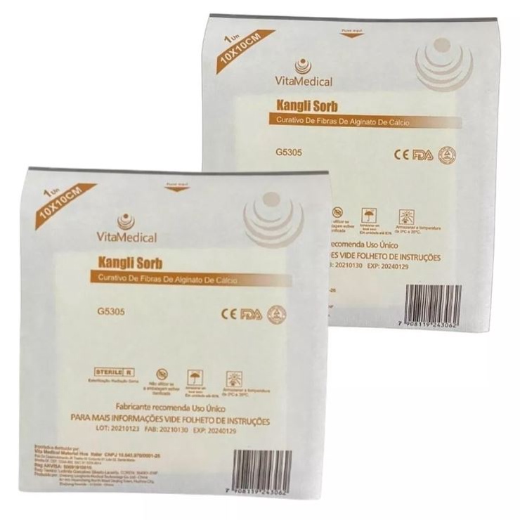 Kit 2 Curativos De Alginato De Cálcio Kangli Sorb 10x10cm - Vita Medical