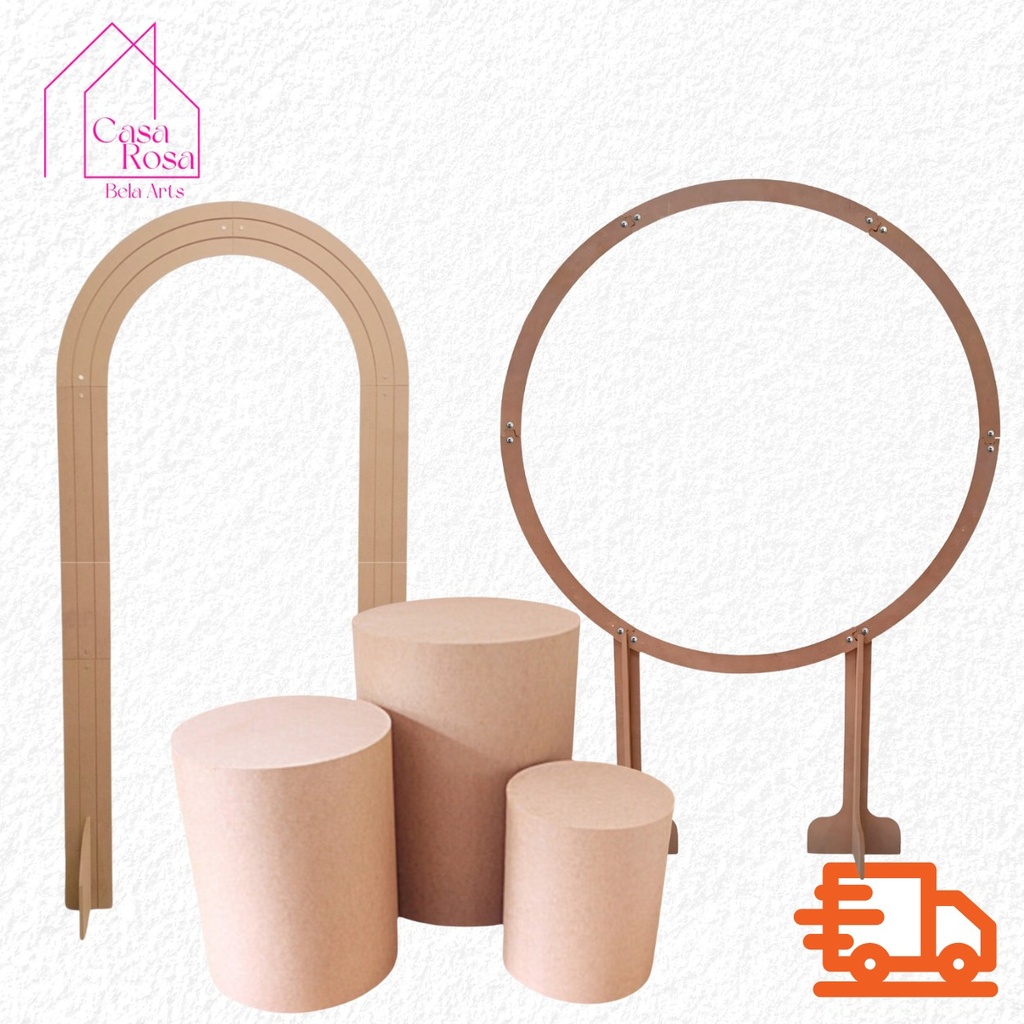 Conjunto Para Festa Mdf Cru Trio de Cilindro e Painel Redondo Pequeno
