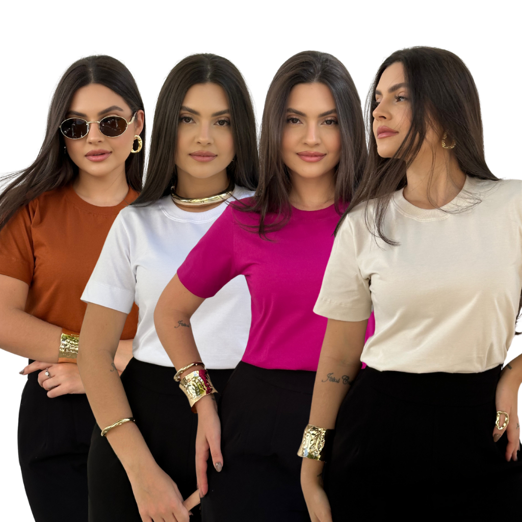 Kit 4 Blusa Lisa T-Shirt Algodão Basica Feminina Manga Curta Camisa Gola O Manegotti