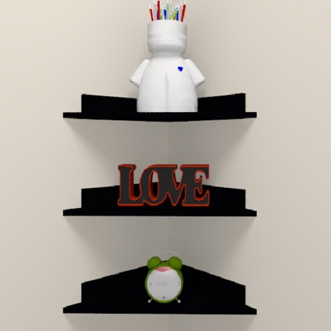 Trio prateleiras canto em MDF Kit com 3 prataleias para canto