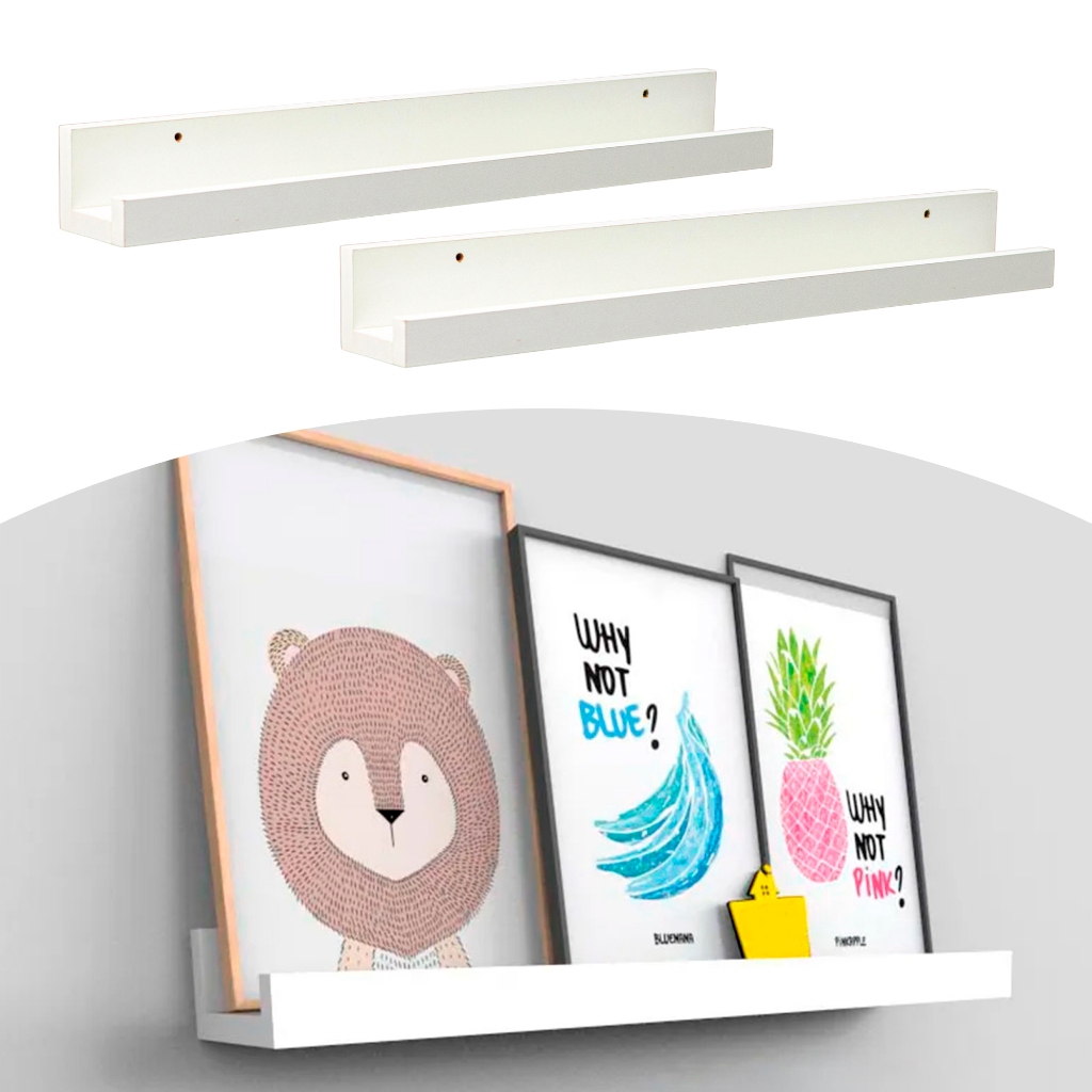 Kit 2 Prateleiras 60cm para Quadros Fotos Livros Branco Mdf