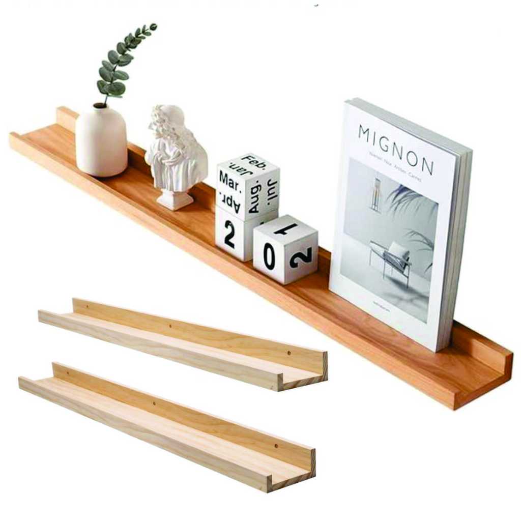 Kit 2 Prateleiras canaleta Pinus para Quadros 50cm Em madeira