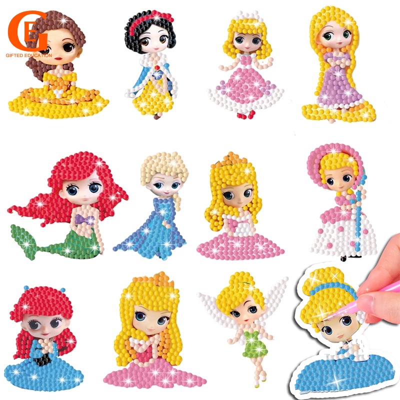 Kit De Adesivos De Pintura DIY Diamante Para Crianças Bling Princesa Rhinestone Adesivo Brinquedo De Concentração Artesanato De Presente Menina