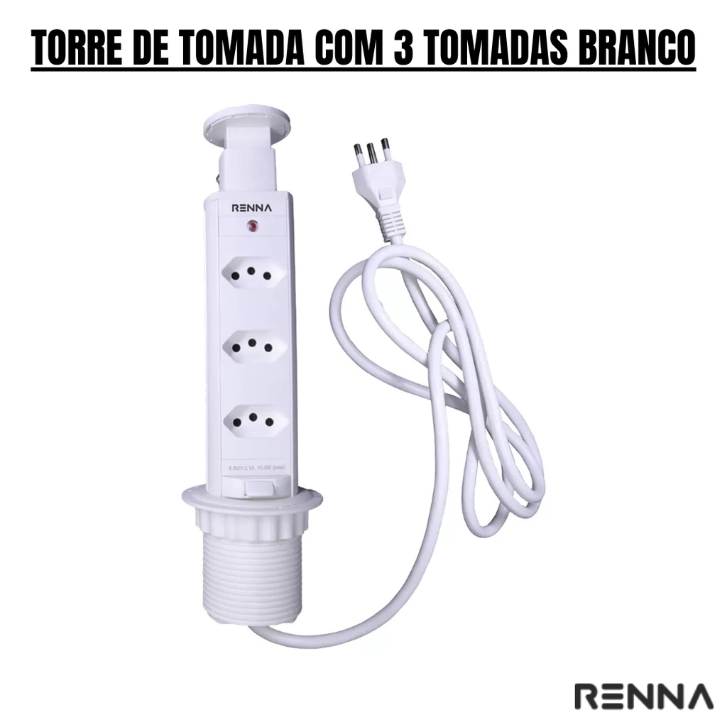 TORRE DE TOMADA COM 3 TOMADAS BRANCA - RENNA