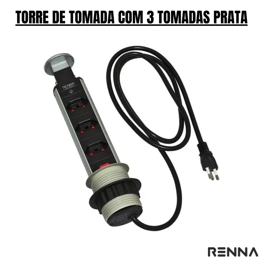 TORRE DE TOMADA COM 3 TOMADAS PRATA - RENNA