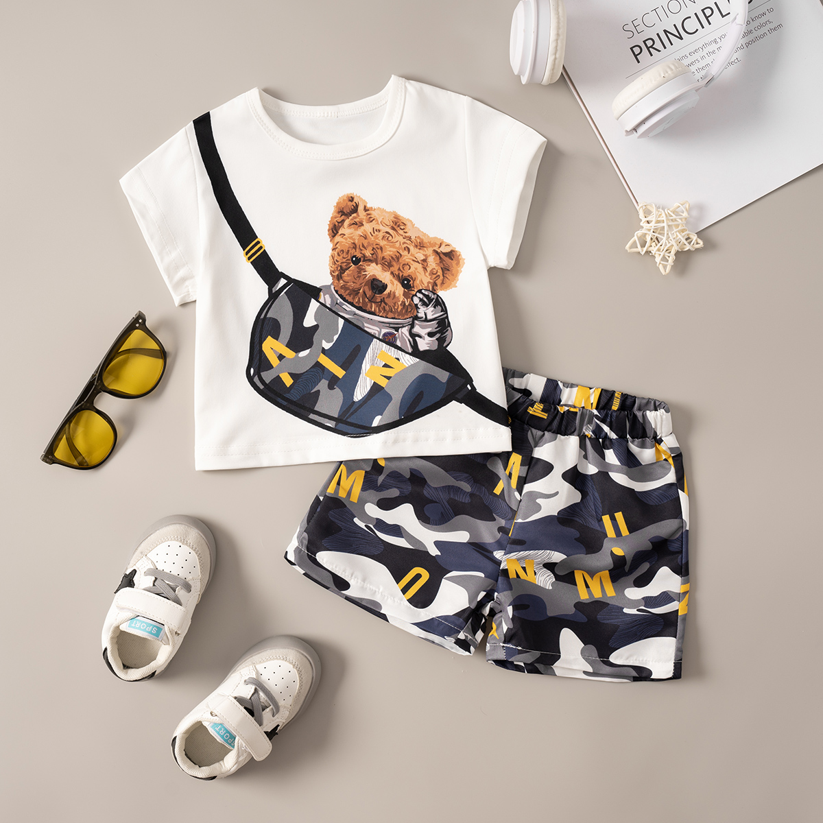 Garotos Fato de Verão Garotos Fato de Verão Garotos Camuflagem Urso de Manga Curta Pullover Boys Shorts Boys Two-