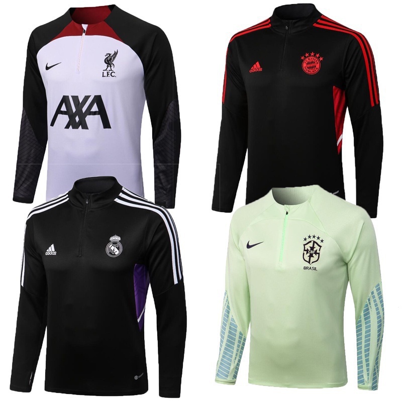 2022 2024 Real Madrid Manga Longa Meio Zíper Camisa Uniforme De Treinamento De Futebol