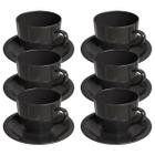 Jogo 6 Xícara Chá Com Pires 170ml Preta em Porcelana - Mundo da Porcelana