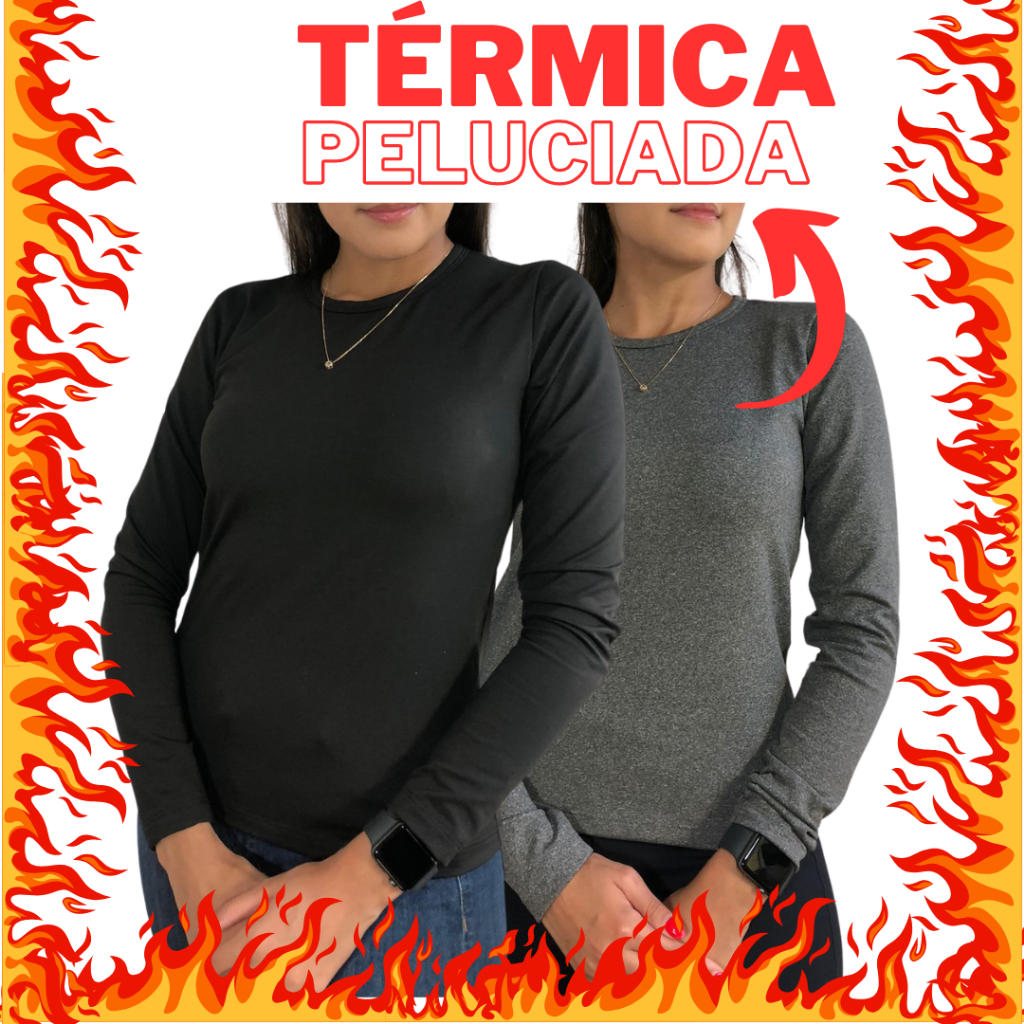 KIT C/2 Blusa de Frio Feminina Segunda Pele Térmica Peluciada Inverno Frio Forrada Flanelada Manga longa Feminina Plus Size