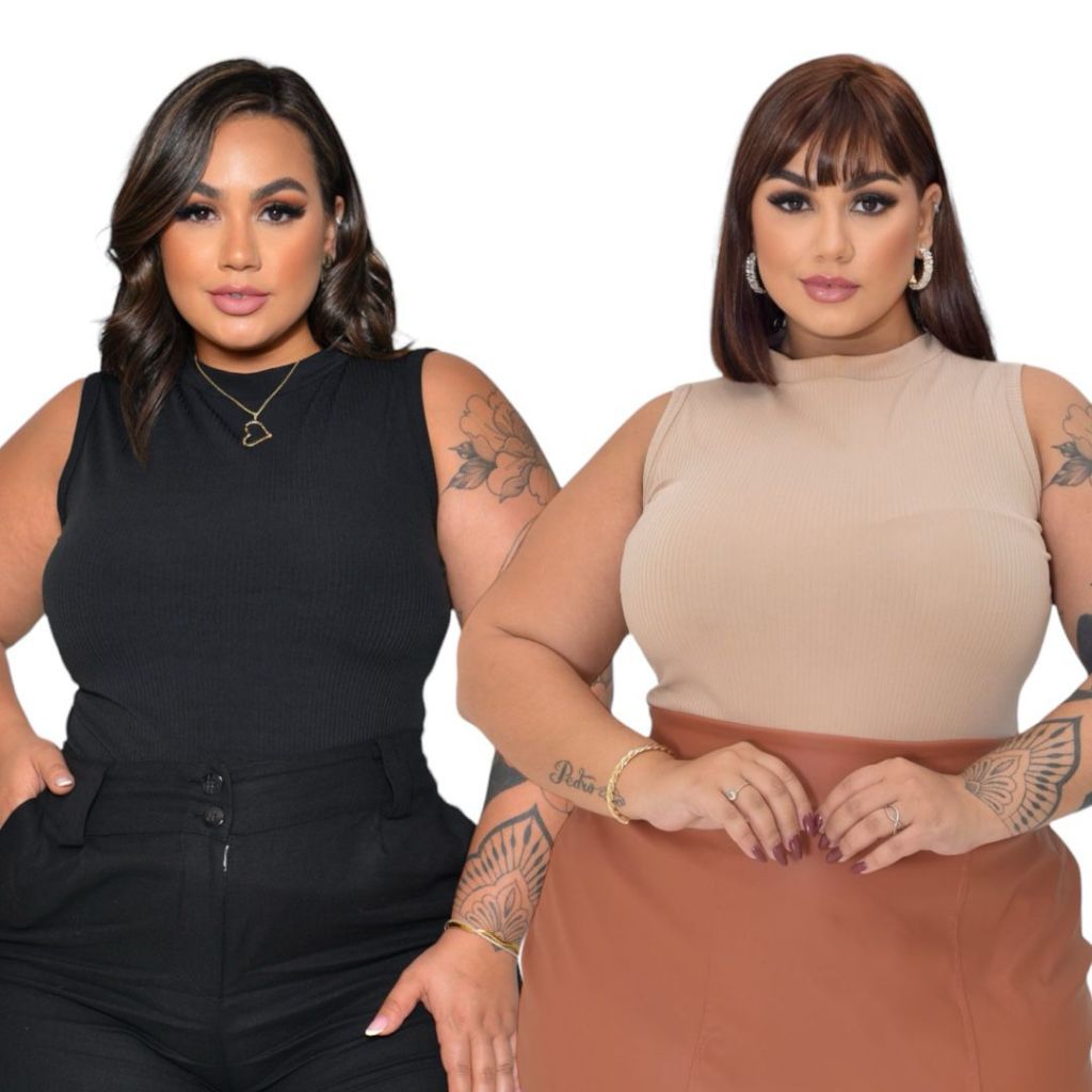 Kit 2 blusa regata canelada gola alta plus size feminina