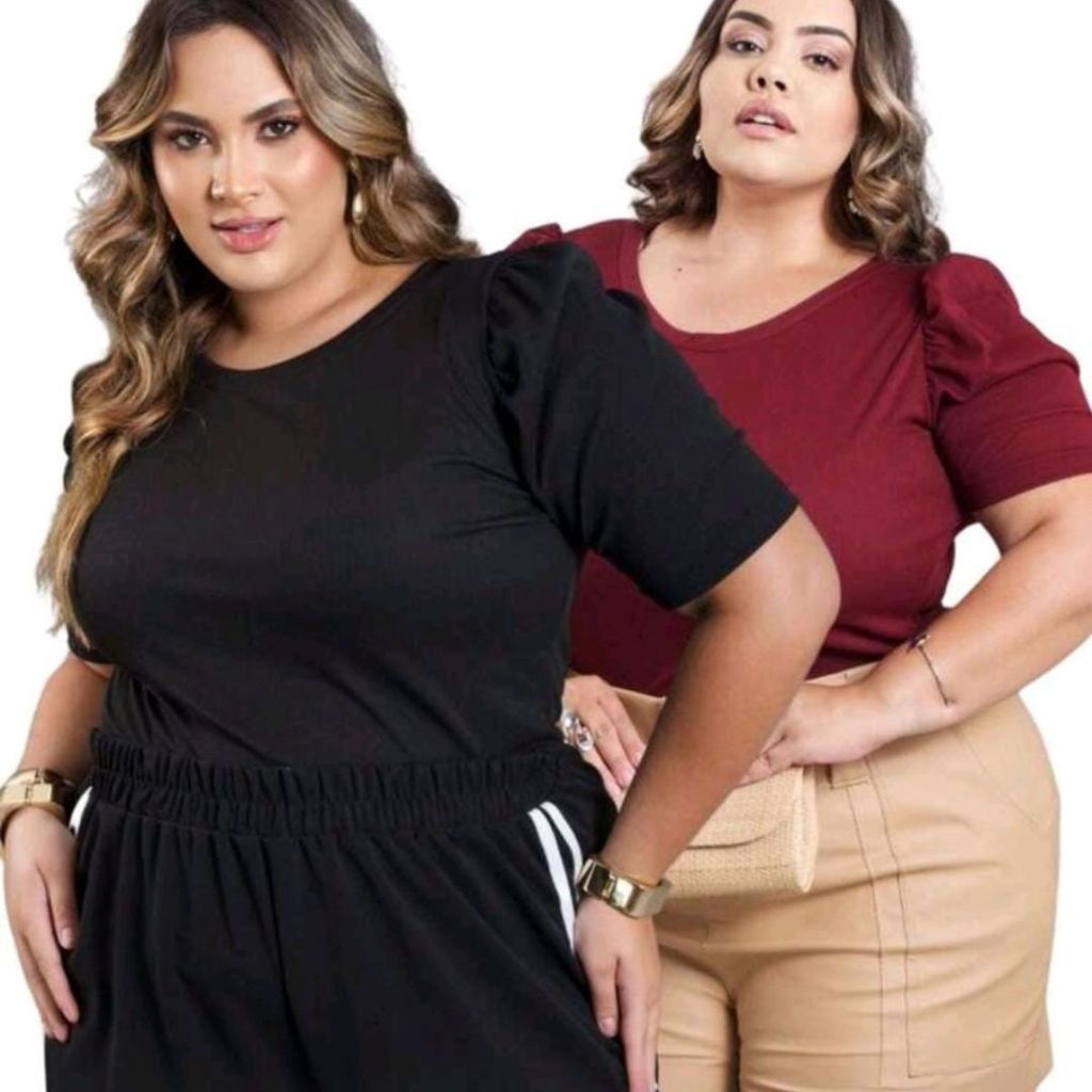 Kit C/ 02 Blusa feminina plus size manga curta malha canelada blusinha plus manga princesa