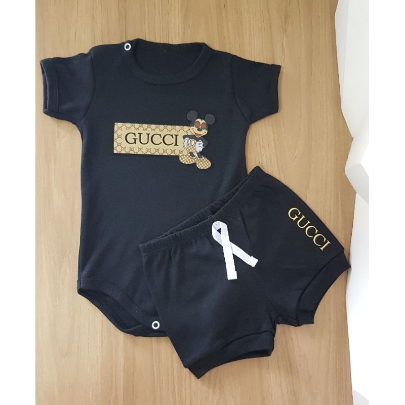 Conjunto de bebê Body com short 100% algodão com aplicação do Mickey Multimarca