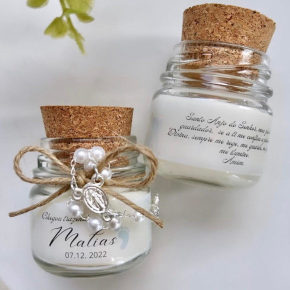 kit 20 velas perfumadas e personalizadas com tampa de rolha - lembrancinhas nascimento