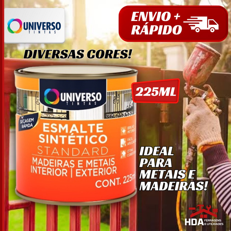 Tinta Esmalte Sintético Para Ferro Madeira e Metais 1/16 225ml Brilhante - Universo Diversas Cores