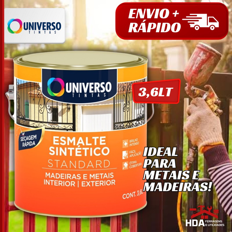Tinta Esmalte Sintético Para Ferro Madeira e Metais Galão 3,6Lt Brilhante - Universo Diversas Cores