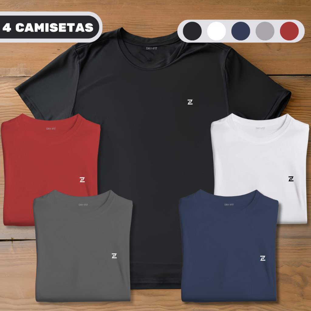 Kit 4 Camisetas Masculina Dry Fit Academia Treino Fitness Musculação Corrida Esporte