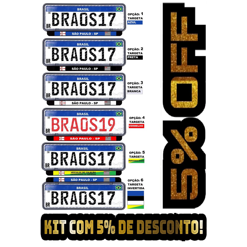 Suporte placa CARRO com Nome Cidade Estado ou personalizado Combo com 5 Kits dianteiro e traseiro 5% de desconto